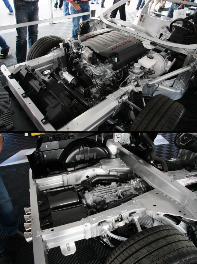 C7はC6と比べると車重が20kg重くなってはいるが、実は軽量化と強度の確保にはGMの様々な新技術が投入されている。特にC7の土台とも言える新型のアルミニウムフレームは、C6よりも57%も剛性が向上しており、重量は45kgも軽減されている。軽量&高強度&高精度のこの新型フレームは、C7における最重要ポイントと言っても過言ではないかもしれない。
