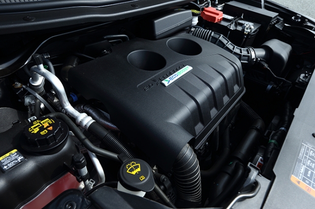 旧エクスプローラーに搭載されていた4リッターV6エンジンより、そのパフォーマンスは優れており、俊敏ではないもののアクセルに反応してグイグイと加速していく様は、かっての大排気量アメリカンとは一味違った独自性である。2リッター4気筒とは思えない分厚いトルク感はターボにより補われているが、そのターボは自然吸気エンジンのようなフィールを示す。