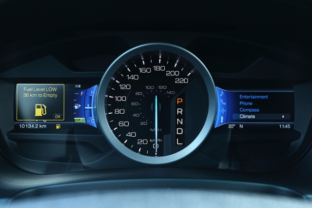 6段ATのシフトの動作感は極めて優れている。変速もスムーズだし、エコブーストエンジンとのマッチングも絶妙。こういった機能部分はかなり洗練されている。またこの6速SSTは、シフトインジケーターを「M」に入れ、シフトノブサイドの「+/−」のボタン操作をすることで、マニュアル感覚で操作可能となる。
