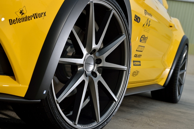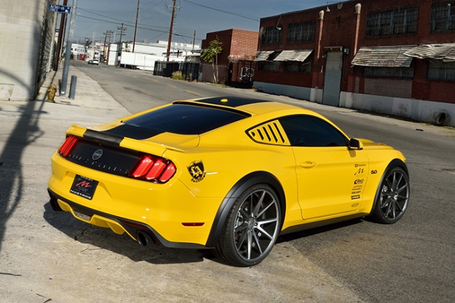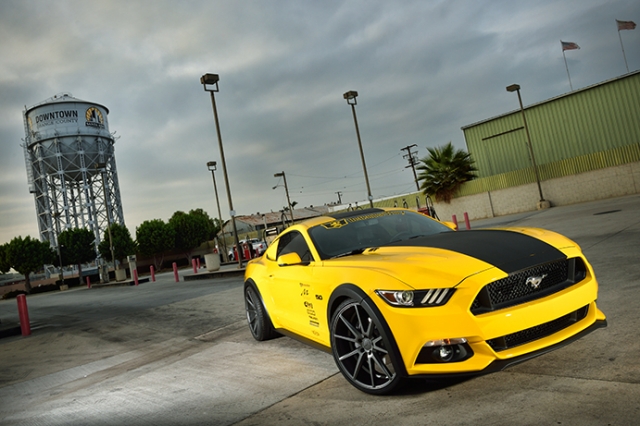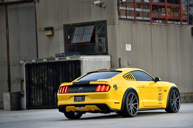 そんな意識で新型を見ていると、昨年のセマショーに出展された新型ベースのカスタムカーの中に異色の1台を発見した。イエロー×ブラックボディのV8マスタングGTである。