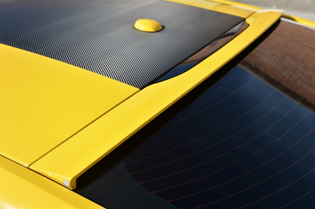 加えて装着されているオーバーフェンダーは、0.75インチと小振りなサイズだが、下げられた車高とツライチにセットされたタイヤ&ホイールと絶妙にマッチしており、すでにこれだけでも十分なカスタマイズ効果を発揮していると言えるだろう。しかもペイントせずにあえてブラックとしたことでイエローボディを一段と引き立てている。ボディラインが一段とキレイに見えるから効果大だ。