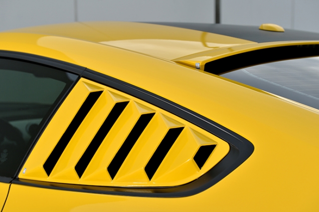 サイドウインドールーバーはディフェンダーワークス製。「ファストバック」の名称が復活した新型マスタングだけに60〜70年代テイストがイメージできるこのパーツはよく似合う。