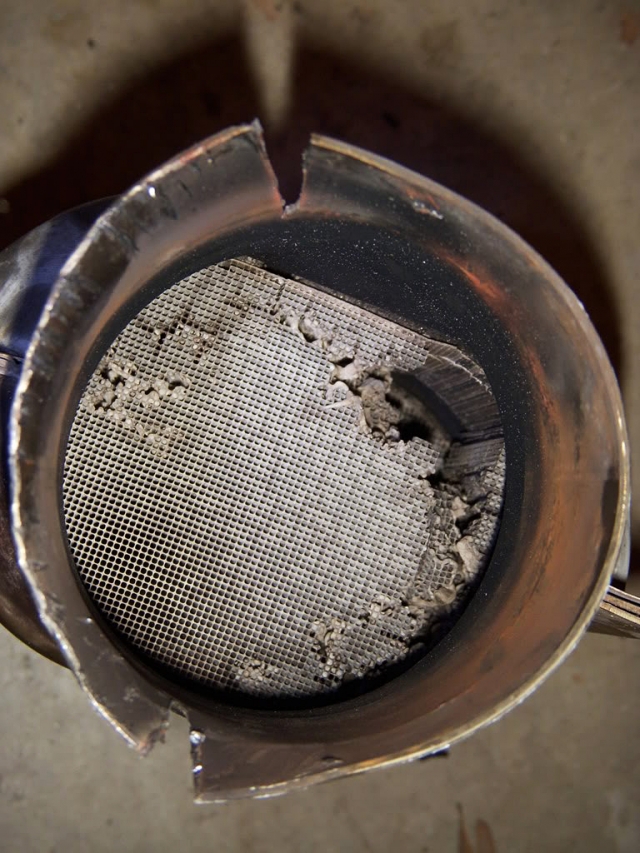 たとえば触媒不良の一例。過走行等で触媒に異常をきたすと、もしくは触媒が溶けると排気不良等でエンジンの噴けが重くなったり、カラカラと異音が出たり…。重症な場合はエンジン始動不良となる場合もある。
