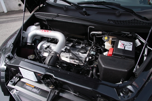 次にエンジン。HHRに搭載されている2.2L直4DOHCユニットは、軽い車種とも相まって、ノーマルでも必要十分なパワー&トルクを発揮する優等生的なエンジンなんですが、エンコーエアポート大阪では、このエンジンのトップカバーを外し、パワーフィルター&サクションパイプ方式のCGSエアインテークシステムを装着。パワーだけでなくフィーリングも劇的に向上させることに成功。この吸気系ファインチューンがMTと絶妙にマッチしてる感じで、アクセルに対してタイムラグなしに"フォーンフォォーンッ"と吹け上がる様はまさしくスポーツカー!メッチャ気持ち良い仕様になってたんですよね。