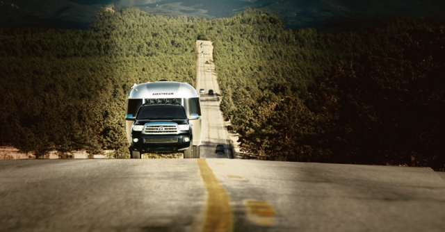 フロントマスクの迫力は業界随一。またそれに伴ってボディも俄然大きく見える。だからか、大型トレーラーハウスを牽引してもまったく役不足を感じない。