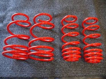 ASDNオリジナルのダウンサスはノーマル比でフロントで3.3cm、リアで約3.8cmほど車高を下げることが可能。一般的なローダウンサスを装着すると若干リア上がりのスタイルになるが、このサスの場合は前後で水平になるように調整されている。バネレートはサリーン・マスタングと同程度に調整しているとのこと。