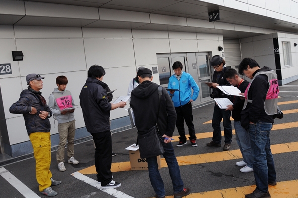 テスト当日は早朝6時半に富士スピードウェイ東ゲートに集合。車両の搬入や準備などの後、午前8時からスケジュール説明、3回の走行枠の間に撮影会などを挟むといった非常にタイとでハードなスケジュールだったが、ASDNの運営スタッフの他、雑誌などのメディアなど数多くの人間が集まった。