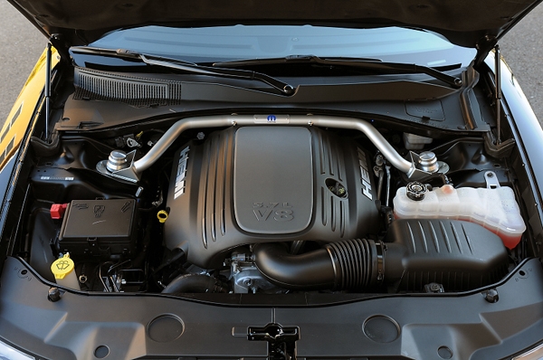 ダッジ・チャージャーR/Tと同じV8・5.7リッターのHEMIエンジンを搭載する。最高出力370HP、最大トルク395lb-ft(54.6kg-m)というスペックにも変更はない。
