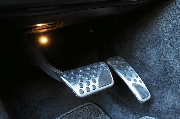 アクセル&ブレーキペダルにはクロームタイプのカバーが装着される。