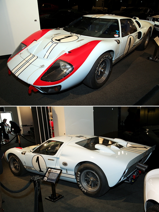 1966年型フォードGT40MkII。パワフルな「NASCAR427ギャラクシー」エンジンが搭載されキャロル・シェルビーによって大幅に改造が施された一台。シリアルナンバー「1015」は、デイトナ24時間レースの優勝とル・マン24時間レースで2位入賞したマシン。