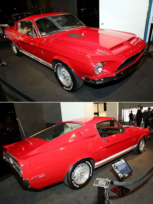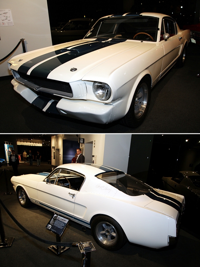 ピーターセンミュージアム2階に特設された式典会場へと続く館内には、歴代シェルビーマシンが続々と並ぶ。62年型シェルビー・コブラの車体番号CSX2000(プロトタイプ第1号車)とCSX2001(量産第1号車)、そしてデイトナ24時間優勝マシンのGT40MkII、65年型GT350マスタング、68年型マスタングGT500KR、さらに2005年型フォードGT等々、シェルビーのアイコン的なマシンが展示され、来場者は、キャロルが手掛けた魅力的なマシンに再会した。