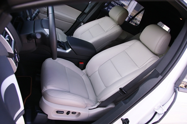 XLTエコブーストのシートはレザーとなる。カラーはライトストーンの一種類。ちなみにリミテッドのレザーはチャコールブラックで、ベンチレーション用のパンチが入っている。