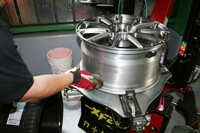 バランサーによる診断で45グラムの重りを装着する。20インチという大径においては、驚異的に少ない重りの数ということだ。HREの精度の高さ、恐るべし。
