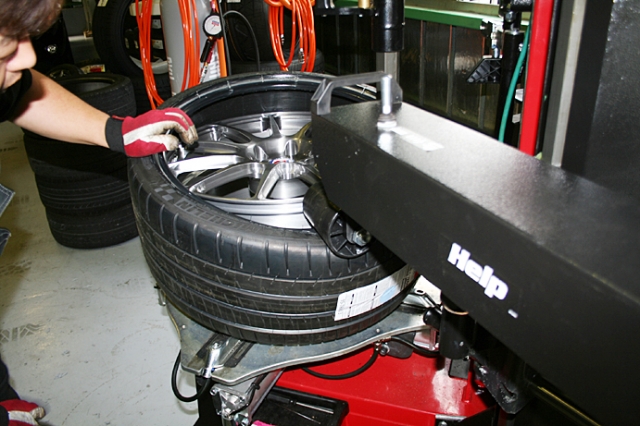 導入されていたチェンジャーは、24インチまで作業可能な精度の高いもの。このチェンジャーを操作する技師もベテランの識者。タイヤの違いによる作業行程を詳しく説明してれた。