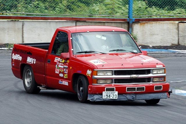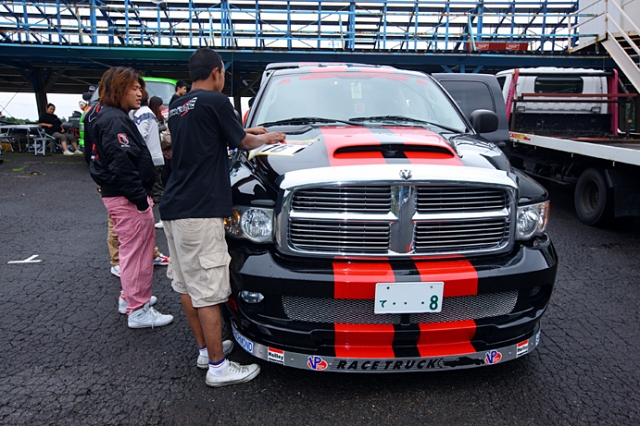 この日エビスサーキットでは、高性能オイルメーカー、トライボジャパン主催のドリフト大会が開催されていた。もちろん参加車両は国産車がほとんどなのだが、その中でひときわ異彩を放っていたのが、冒頭のダッジラムと赤いシボレーC1500の2台のアメリカンフルサイズピックアップトラックだった。