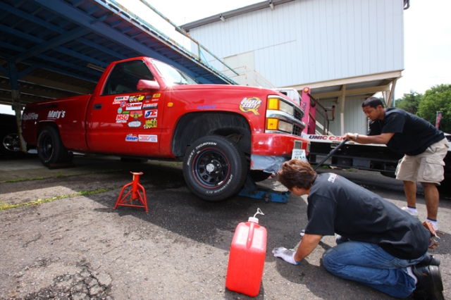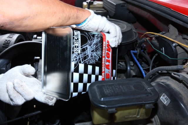 ラムの走行の様子を元に、次に走るC1500の調整に入る。こちらはオイルの交換をしている風景。ラムでは思っていた以上にエンジンが回っていたので、それを参考にC1500のオイルを交換したのだ。