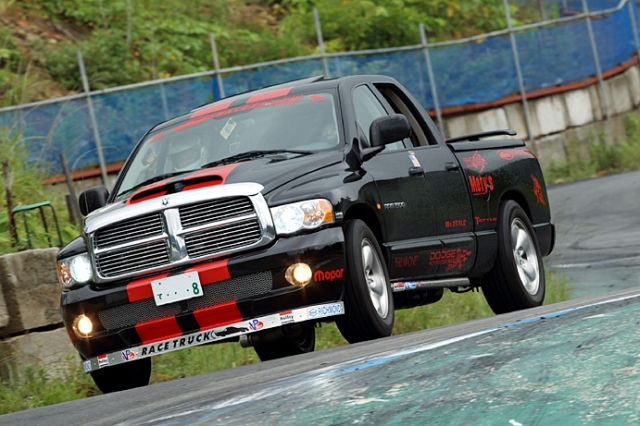 アメ車特有の野太いうなり声をあげながら、コーナーに進入する黒いダッジラム。巨体を揺らしながら豪快なドリフトをキメるその姿に、最初は「コイツら何者? あんなんで本気で走るつもりかよ?」と眉唾な視線をくれていた主催者及び他の参加者たちも、さすがに目の色を変えた!