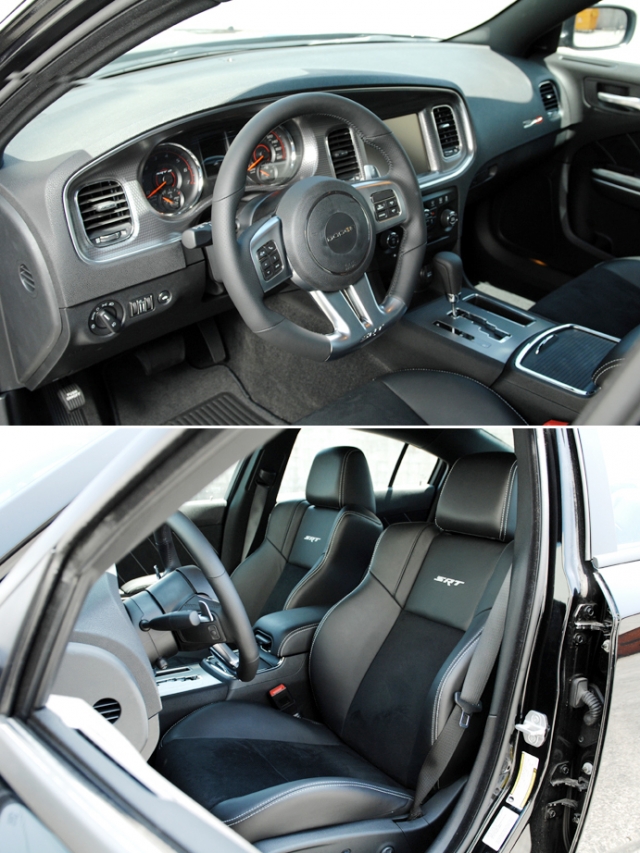 インテリアは2011年にモデルチェンジを受けたものと同じ状態だが、SRT8には、レザーとスエードを使用した質感の高いバケットシートが装着されている。