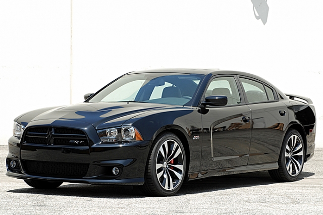 まずはブラックボディのSRT8。2011年にモデルチェンジした現行型チャージャーは、エクステリアやインテリアに大掛かりな変更がなされているが、SRT8は、そのベースに6.4リッターV8 HEMIを搭載し、ブラックグリルやブレンボブレーキ、鍛造アルミホイール等を装備して、ダッジチャージャーのトップグレードに相応しいハイパフォーマンスマシンに仕上げられている。