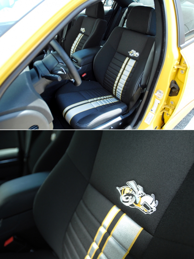 Super Beeには、クロス地のストライプパフォーマンスシートが標準装備。ストライプ柄もSuper Bee仕様になっている。