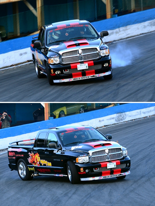 迫力満点だった前回をも上回るパフォーマンスを披露した森久保氏とダッジラム。今回マシンには、足回りとパワートレインの双方からのアップデートが施されていた。