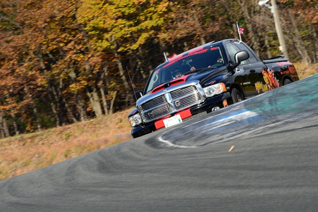 C1500はレギュラーキャブのV6&ローダウン仕様である。一方ラムはクワッドキャブのV8ベースで、車重の違いやホイールベースの違い、また車高の違いなどの物理的な差が、アップダウンの激しいコースレイアウトと相まってラムに襲いかかったようである。