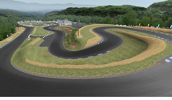 このコースのアップダウンの激しさが分かりますか? コーナーをクリアした状態から一気に下る。速度がのっている状態だと、一瞬飛ぶ感じになる。