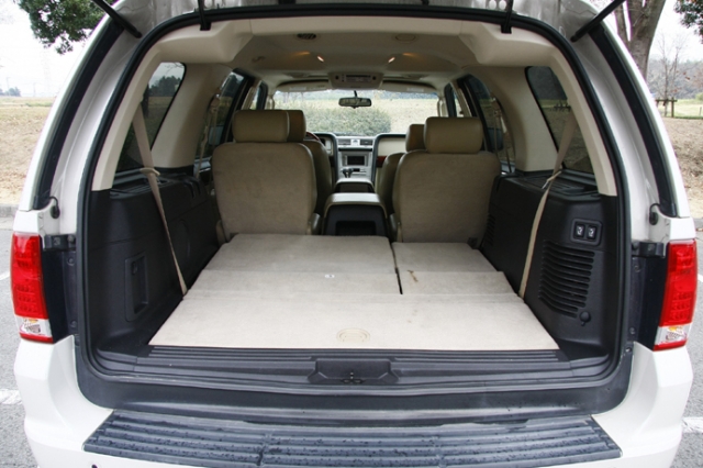 サードシートはスイッチひとつで簡単に折り畳みが可能である。リアサスペンションにダブルウイッシュボーンを採用したおかげで、サードシートを折り畳んだ時にフルフラットになるようになった。