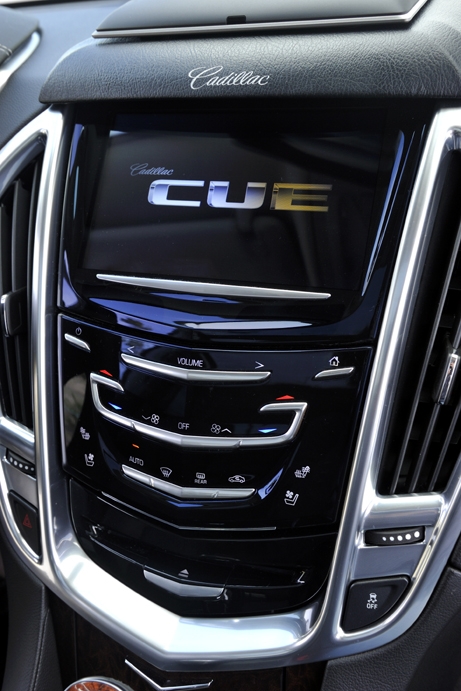 マイナーチェンジにより装備された「CUE」キャデラックユーザーエクスペリエンス。タブレット端末やスマートフォンと同じ感覚で使用できる最新デバイス。日本語対応しているので、誰でも普通に扱える。