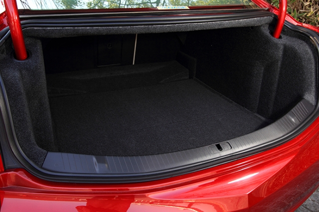 驚きのトランクルームは、ゴルフバックを縦に4本収納できる大きさを誇る。FFだけに室内空間が広大であり、さらにトランクにも余裕がある。