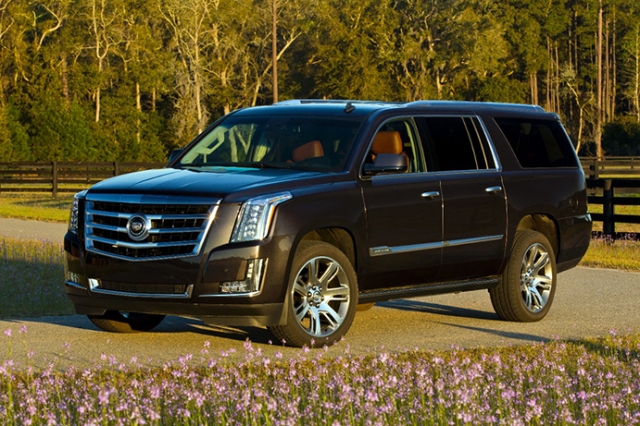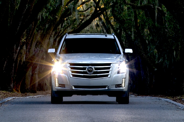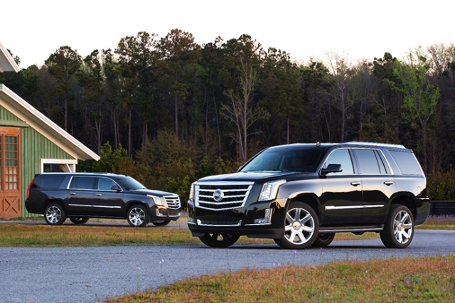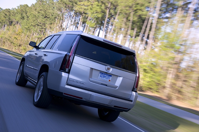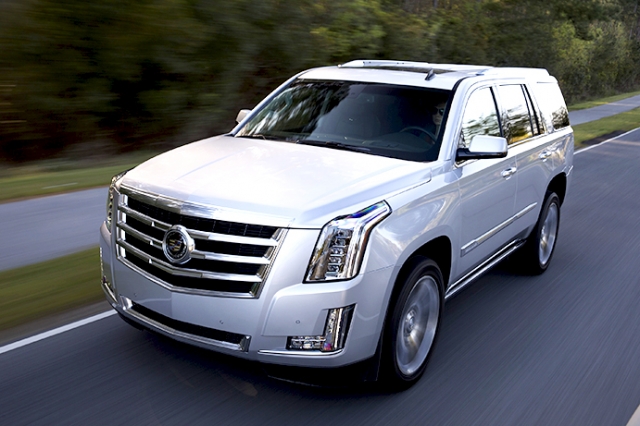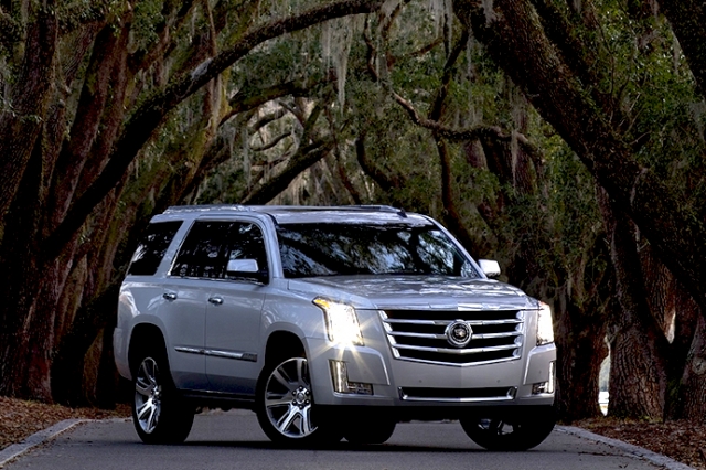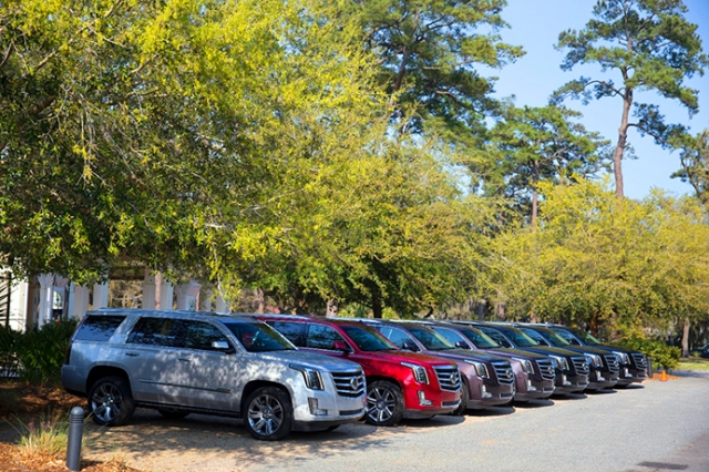 現地で行われたメディア試乗会の模様です。色とりどりのエスカレードが用意されました。赤いエスカレードは新鮮!