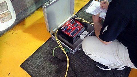 車体の車重バランスは、バネレートを決める際に必要とのこと。この測定器はレース等でも使用しているものだ。