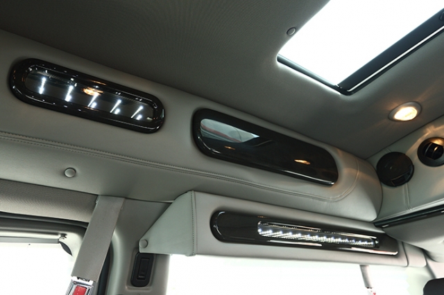 サードシートの空間は、乗車時間が経つことで、閉鎖的な空間として息苦しさを覚える事があるというが、このコンバージョンには電動ガラスサンルーフが備わるために、サードシートにも開放的な空間がもたらされる。