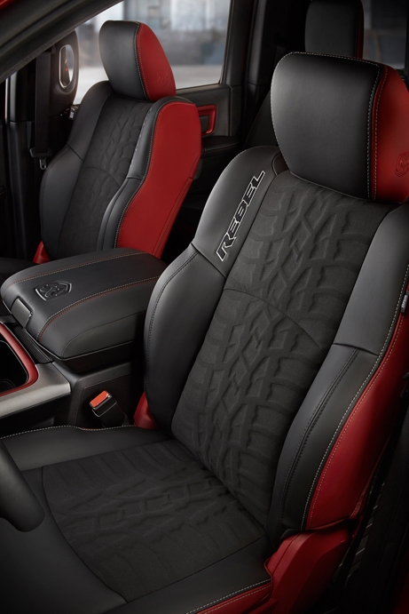 これは2015年モデルとして追加されるラム1500 Rebelである。Rebel(レベル)とは文字通り「反逆者」という意味であり、オフ走行におけるラプターの牙城を崩そうと登場してきたモデルに違いない。