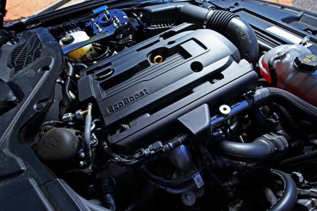 搭載されるエンジンは、2.3リッター直4エコブーストエンジン。314ps、最大トルク44.3kg-mを発生させ、6速ATが組み合わされる。このエンジン、想像以上にレスポンスが良く、瞬間的な加速力では旧V8モデルを凌ぐ感触が味わえる。