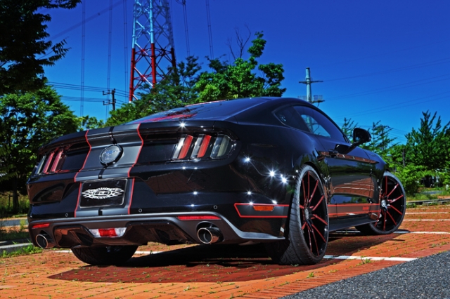 最近、ブラックボディにマットブラックを使用したストライプやラッピングが流行っており、まさに最先端仕様といっても過言ではない。同時に、スポーティな車両にスポーティなホイールではなく、あえてラグジュアリーなホイールを組み合わせるのが、ガレージダイバン流であり、今回のマスタングにおいても見事、最新マスタングと最旬リムと最先端カスタムを組み合わせた一台を作り上げたのである。