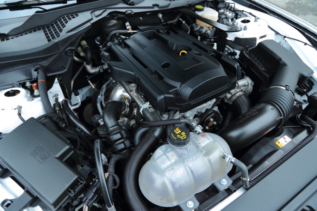 搭載されるエンジンは、2.3リッター直4エコブーストエンジン。314ps、最大トルク44.3kg-mを発生させ、6速ATと組み合わされる。このエンジン、想像以上にレスポンスが良く、瞬間的な加速力では旧V8モデルを凌ぐ感触が味わえる。