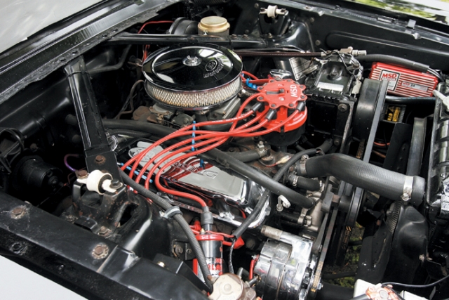 この65年型は、すでにレストア済みの車両をベースに、エンジン、ミッションなどを改めてリビルトして仕上げたクルマある。パワステやパワーブレーキ&Fディスクなどが新たに装備され、点火系はMSDで強化、ヒート対策の電動ファン等も追加されている。そのため、日常の足として普通に走れるし、渋滞につかまっても水温計を気にする必要もない。