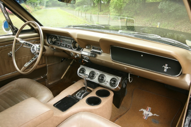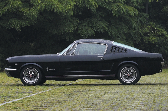 初代マスタングのスタイルは、全体に均整が取れていてバランスが非常にいいと思う。ボディに対するホイールの大きさもベストだ。そして細部のディテールが非常に美しい。ボンネットフードから水平に引かれたライン、その上をトップからリアテールまで緩やかに流れているファストバックと呼ばれるルーフ形状、軽く盛りあがったフェンダーやボンネットフードの形状など、細かく挙げればキリがない。本当に惚れ惚れとする美しさである。もしも自動車デザインに黄金比があるとすれば、この形になるのではないかと思えるほどだ。