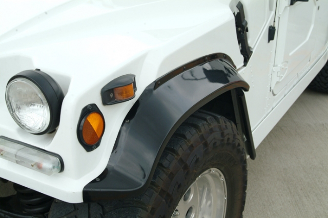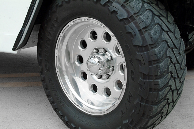社外の20インチホイールを装着していた。オーバーフェンダーと相まってH1の迫力をさらに増している。