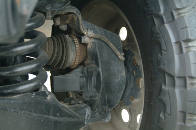 ハブリダクションといって、最低地上高を確保するために、ハブ内にギアボックスを備え、タイヤの中心とドライブシャフトの中心をオフセットする機能を備える。