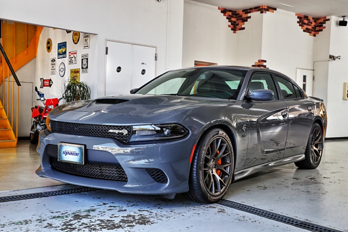 スペースのショールームに置かれていたダッジチャージャー。正式には、ダッジチャージャーSRTヘルキャットである。日本には10台もないと言われているチャージャーのヘルキャット。チャレンジャーのヘルキャットは、すでに50台以上日本に直輸入されているといわれているが、一転チャージャーのそれは超レアな存在である。