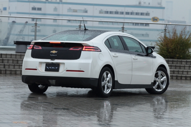 実は筆者は動いているシボレー・ボルトに乗ったのは今回が初めてですが、ボルトに触れるのは初めてではありません。夏に開催されたシボレー・キャプティバのプレス発表会の際、待機所にボルトが展示されていたのですが、その時にGMジャパンの車輛課の方にお願いして、運転席や助手席に座ったり、ボディの各部をチェックしたりしています。↓