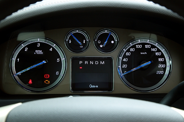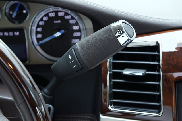エスカレードは、イマドキのクルマのようなキーレス式は採用されていないので、始動には当たり前の儀式が必要になる。早速エンジンを始動させ、コラムシフト! を動かし、いざ出発。