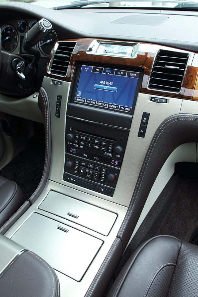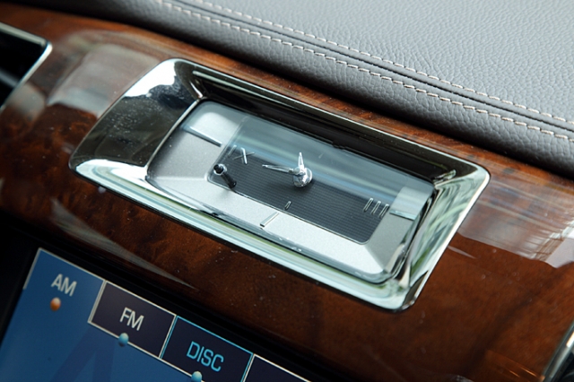 そしてドアを開けインテリアを見渡すと、これまた瀟酒なチョコレート色のレザーシート。そしてオリーブアッシュ&明るいカラーのウォールナットウッドのコーディネートにため息が出る。「あ〜素晴らしい」。見た瞬間に乗り手を圧倒するインパクト、そして洗練度に、「豪華さの象徴」であった往年のキャデラックが甦ったような気がした。