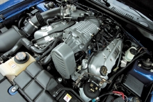 イートン製のスーパーチャージャーを装着した4.6リッターV8は、390馬力、トルク53.9kg-mを発生する。内装はホワイトメーターでスポーティなテイストを醸しだし、6速MTを標準装備する。その加速の荒々しさと凄さは、さすがメーカーチューンのSVTは伊達ではないと感じさせる代物。