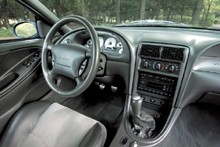 まるでロケットのように、猛烈な勢いで加速していく。この、地の底から無限にわいてくるようなトルク感はホントに凄い。その加速は暴力的ですらある。運転時は常に冷静なボクでも「おらおら、ドケドケ」と叫びたくなるくらいだから、このクルマを日本で大過なく扱うには、相当に自制心が必要かもしれない…。と、まあこれが、03年型マスタングSVTコブラに乗った第一印象である。