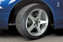 5本スポークのSVTホイールに、ブレーキはフロントに13インチディスクを備えた強化品。