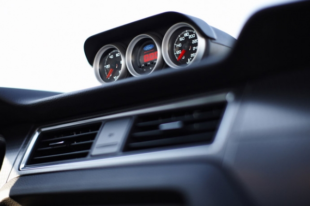 ラグナセカに装着される3連メーター。水温、油音のほかに1/4マイルのタイムやリアルG等が表示可能。これだけでも雰囲気が高まるから不思議である。