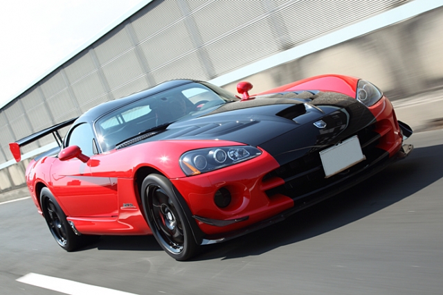 ダッジバイパーSRT10 ACR(American Club Racer)は、ノーマルのバイパーSRT10をベースに軽量化とエアロダイナミクスの向上、さらにレーシーなサスペンションを採用することで、SRT10の戦闘能力を一段と高めたスペシャルモデル。0〜96km/h加速は4秒以下、最高速は325km/hの実力を誇り、史上最速のバイパーとして認知されている。